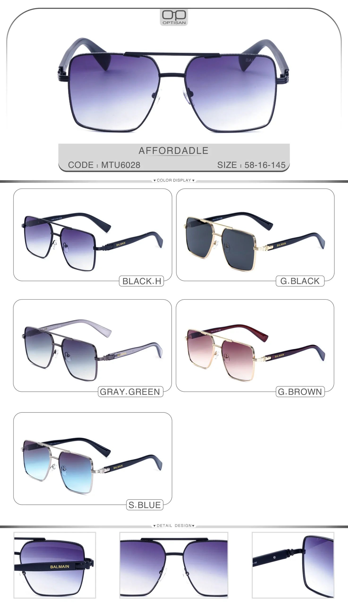 با عینک Balmain مدل MTU6028، شیک و مدرن به چشمهایتان نگاه کنید! طراحی منحصر به فرد و کیفیت بالای این عینک، شما را به یک نماد استایل تبدیل میکند. لنزهای با وضوح بالا و فریم سبک، راحتی و زیبایی را برای شما به ارمغان میآورد. همین حالا خریده و به جمع خوشاستایلها بپیوندید!
